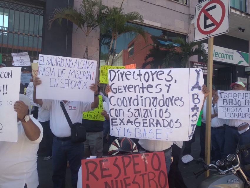 Los trabajadores reclaman que, mientras directivos perciben sueldos que alcanzan los 118 mil 237 pesos brutos mensuales, ellos ganan apenas 7 mil pesos y deben costear el mantenimiento de motocicletas y gasolina.