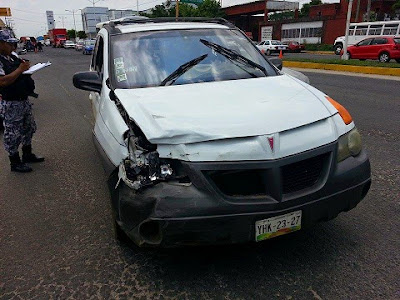 Al tratar de incorporarse al bulevar, frente a conocida agencia de autos, fue impactado por una camioneta Chevrolet, tipo Aztek, de modelo reciente, que era conducida por Yolanda Hernández, quien procedía de la comunidad El Tigre, perteneciente al municipio de Sayula de Alemán.