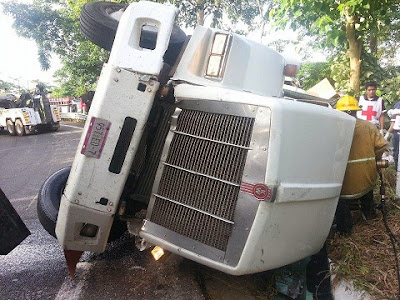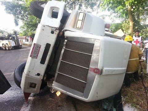El conductor de un trailer que jalaba doble remolque resultó herido al volcar la unidad en la autopista Nuevo Teapa-Cosoleacaque, frente a la colonia Emiliano Zapata.