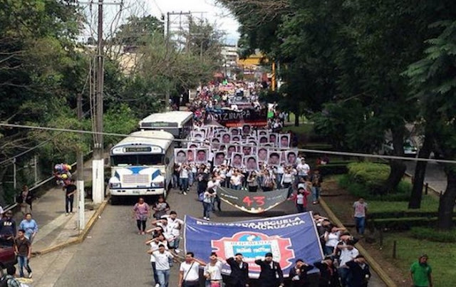 Ciudadanos se movilizan en Chiapas a un año de la desaparición de los 43. Foto: Twitter @FerMG33_