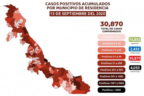 Veracruz acumula 30 mil 870 casos de Covid; hay 4 mil 033 fallecidos