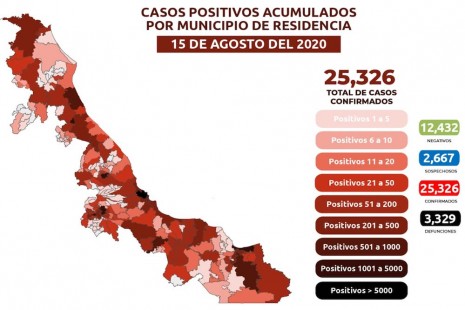 Suman 3 mil 329 fallecidos por Covid-19 en Veracruz; hay 25 mil 326 contagiados