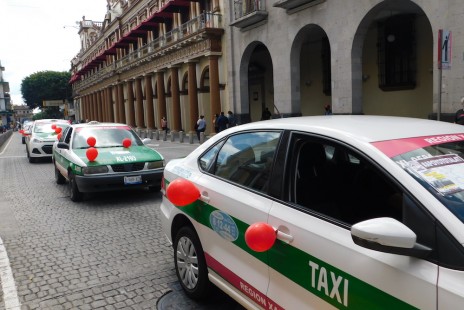 Taxistas realizan manifestación en Xalapa en apoyo a AMLO