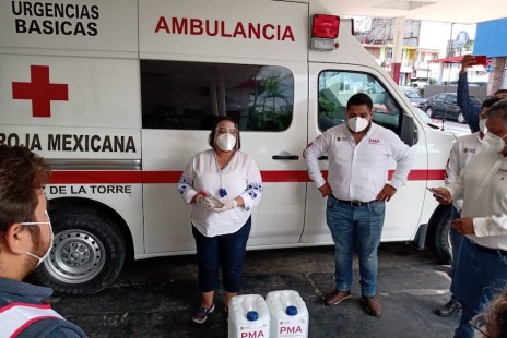 Entrega Adriana Esther solución antiviral a hospitales de Martínez de la Torre