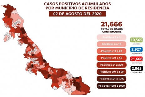 Veracruz acumula 2,865 muertes por Covid-19; hay 21 mil 666 casos confirmados