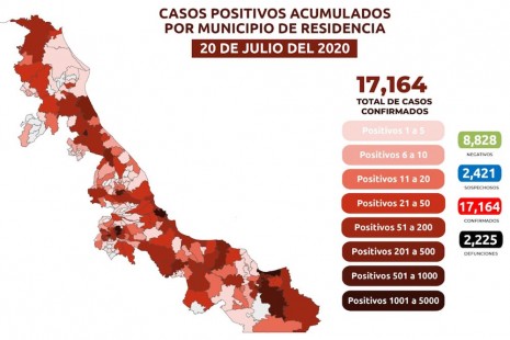 Veracruz supera los 17 mil casos de Covid-19; hay 2 mil 225 fallecidos