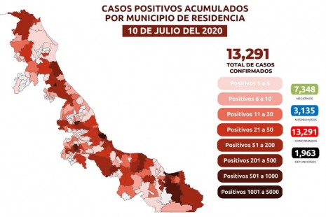 Veracruz registra 1,963 muertes y 13 mil 291 casos positivos de coronavirus