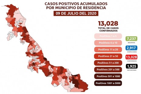 Veracruz rebasa los 13 mil contagios de Covid-19; hay mil 925 defunciones