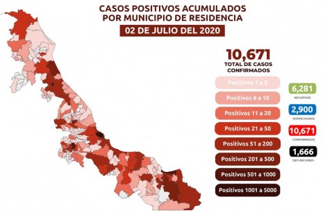 Sube a 10,897 los casos positivos de Covid-19 en Veracruz; hay 1,690 defunciones