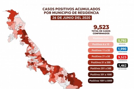 En Veracruz se registran mil 519 muertes y 9 mil 877 contagios de coronavirus