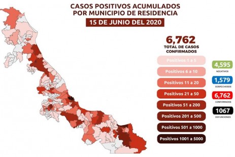 Veracruz registra 1,067 muertes y 6 mil 762 contagios de coronavirus