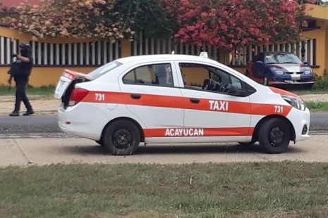 Abandonan taxi con restos humanos frente a delegación de la SSP en Acayucan