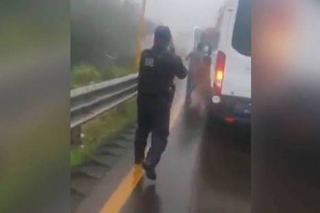 VIDEO: Policía dispara entre neblina para ahuyentar a presuntos asaltantes en la Puebla-Orizaba