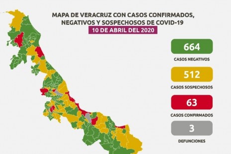 Coronavirus en Veracruz: 3 muertos, 63 contagiados y 512 sospechosos
