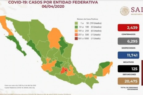 Sube a 125 muertos y 2,439 contagiados de coronavirus en México
