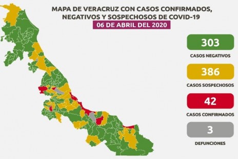 Coronavirus en Veracruz: 3 muertos, 42 contagiados y 386 sospechosos