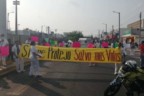 Trabajadores del IMSS bloquean calles de Veracruz; exigen insumos ante coronavirus