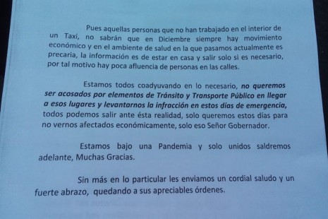 Taxistas piden apoyo al gobernador por afectaciones del Covid 19