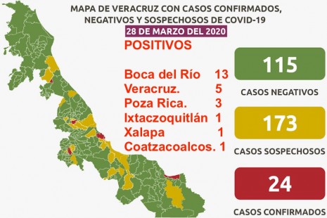 Sube a 24 los casos positivos de coronavirus en Veracruz