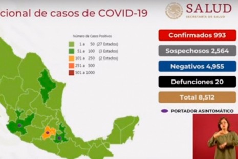 Aumenta a 20 personas muertas por Covid-19 en México; suman 993 casos confirmados