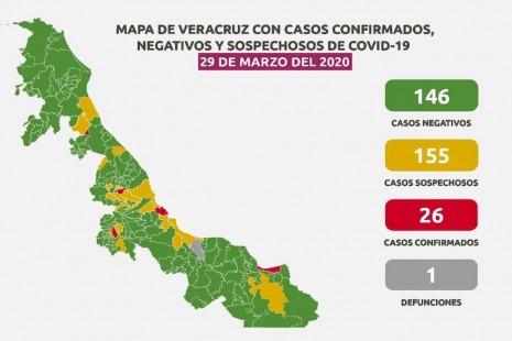 Confirman primera muerte por coronavirus en Veracruz; 26 confirmados y 155 sospechosos