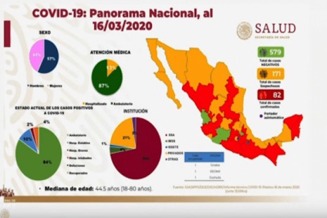 Aumentan a 82 los casos positivos de Covid-19 en México