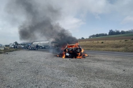 Presuntos huachicoleros tacan a GN y queman patrulla en límites de Veracruz y Puebla