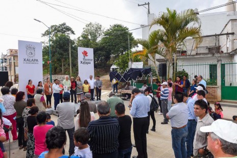 El presidente municipal Hipólito Rodríguez, entrega pavimentación de la calle Ciprés