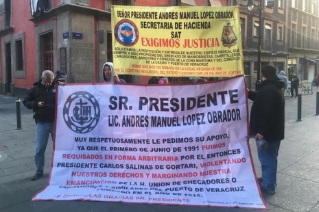 Ex trabajadores de Veracruz protestan en Palacio Nacional