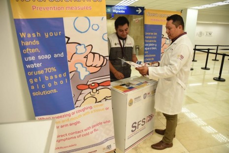 Informa Salud sobre coronavirus con módulos en aeropuertos y puertos
