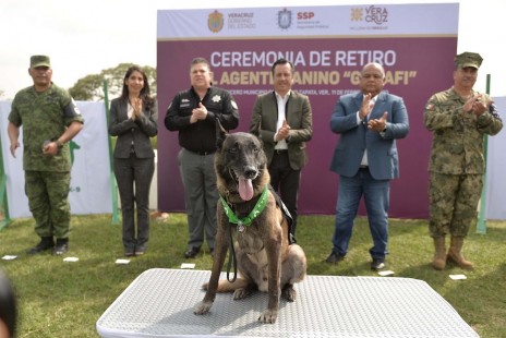 Con honores, se retira el agente canino “Gadafi”, tras ocho años de servicio