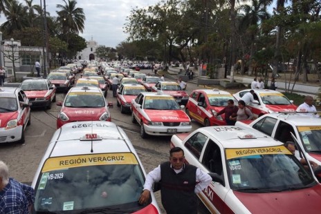 Taxistas del Puerto de Veracruz protestan contra Cabify, Uber y Didi