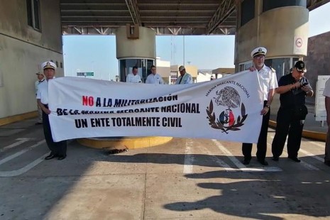 Marinos mercantes protestan en Veracruz contra presunta militarización de aduanas
