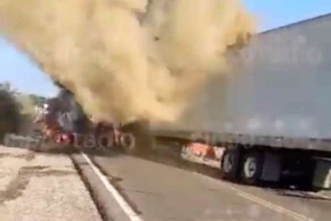 Tráiler choca y causa aparatoso incendio en la autopista Veracruz-Córdoba