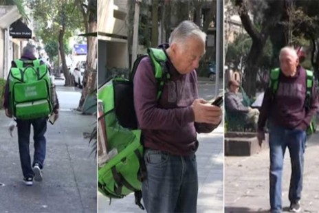 A sus 74 años, repartidor entrega pedidos a pie