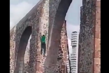 VIDEO: Joven se lanza de los Arcos de Querétaro