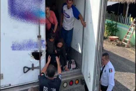 Rescatan a 58 migrantes que viajaban en caja refrigerante en Veracruz