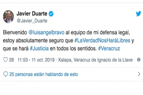 Javier Duarte suma a su equipo de defensa al ex fiscal Luis Ángel Bravo