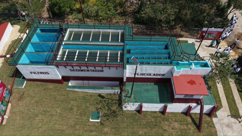 Además, se realizó la colocación de material filtrante (granzón y arena sílica), limpieza general del floculador y sedimentadores, reparación del cableado eléctrico, instalación de luminarias y construcción en concreto de los accesos.