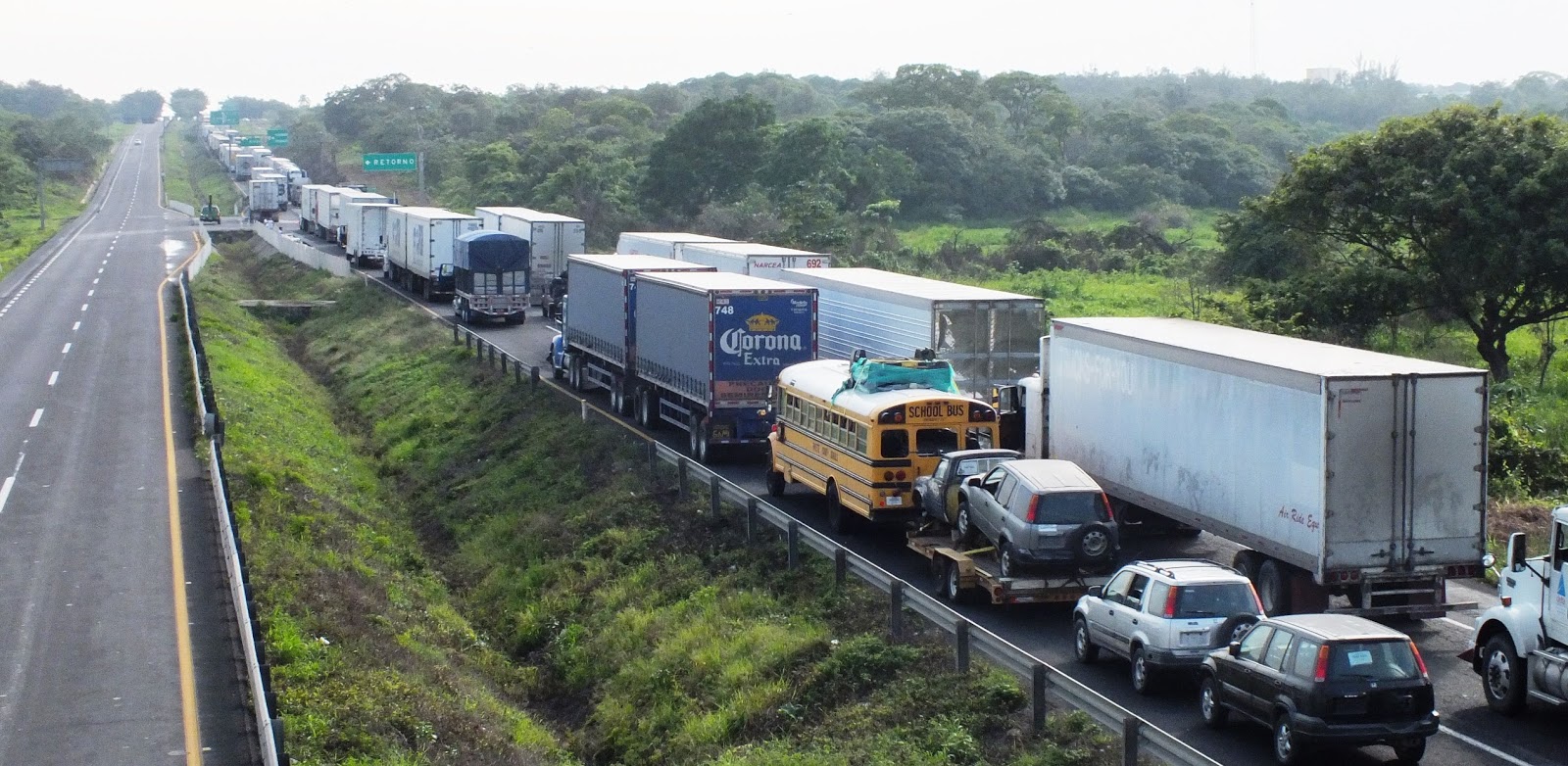 Aunque el MMPV aseguró que habría paso para los vehículos particulares, de emergencia y autobuses de pasaje, la realidad es diferente, ya que los mismos tráileres en una actitud vengativa, al no poder circular ellos, se apoderaron de los cuatro carriles de circulación, evitando el paso de las unidades.