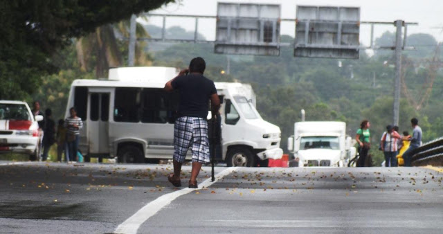Entrevistado abajo del puente de la autopista, a la altura de la Diez de Mina, agregó que “no hay empresas que quieran venir a la zona por la inseguridad, no hay empleo; y lo más importante, porque Enrique Peña Nieto no quiere entregar a Javier Duarte de Ochoa”.