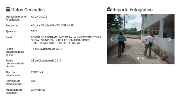 Vecinos de la colonia Allende reportaron que el Ayuntamiento de Agua Dulce inició una obra de ampliación de colector de aguas negras sobre el callejón Cuauhtémoc, obra que a los pocos meses fue abandonada, pero que ante el ORFIS aparece como terminada.