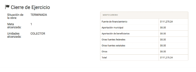 Este medio de comunicación estableció contacto con el Órgano de Fiscalización Superior del Estado de Veracruz, mediante la línea telefónica gratuita de atención a la ciudadanía, donde funcionarios de esa dependencia señalaron que si en el bloque correspondiente al "Cierre de ejercicio" dice "Terminada", esto significa que la obra debe estar concluida y funcionando.