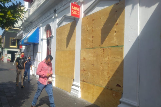 Desde este miércoles algunos establecimientos de Xalapa como bancos y tiendas de diferentes artículos protegieron ventanas y puertas de sus locales para evitar pérdidas materiales durante la marcha prevista para este jueves.