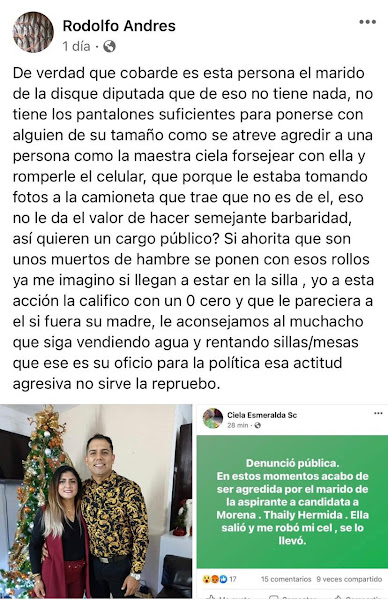 En las últimas horas se ha viralizado en redes sociales señalamientos de presunto robo con violencia por parte de un supuesto servidor público federal y esposo de quién dicen siempre se presenta como diputada local suplente Thaili Anai Hermida Ramón.
