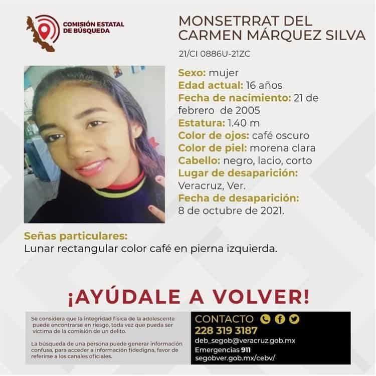 Por su parte, la adolescente Monserrat del Carmen Márquez Silva, de 16 años, desapareció desde el día 8 de octubre, por lo que su familia la busca desesperadamente.