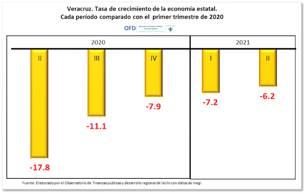 La economía veracruzana sigue mostrando una circunstancia adversa. Durante el segundo trimestre de 2021 pandemia (primer trimestre de 2020).