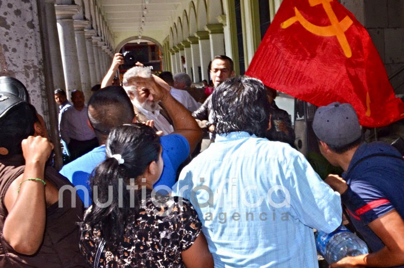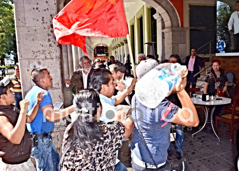 El senador de la república Alejandro Encinas (PRD) fue agredido por integrantes de la organización popular Frente Popular Revolucionario a quien le vaciaron un galón de agua en pleno café La Parroquia, en el centro de Xalapa.