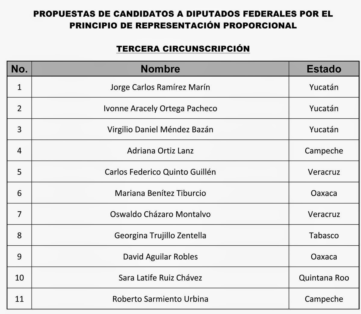 Quien llevó la mejor parte en el nuevo listado fue Yucatán, estado natal de la secretaria general del PRI, Ivonne Ortega Pacheco: los primeros tres lugares son para dicha entidad con Jorge Carlos Ramírez Marín, quien renunciara a la titularidad de la SEDATU y saliera del gabinete presidencial; la propia Ivonne Ortega y Virgilio Daniel Méndez Bazán, recientemente subsecretario de la Defensa Nacional.