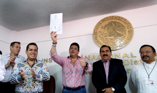 Después que consejeros del INE y representantes del partido realizaron el recuento de votos del 60 por ciento de casillas en el Distrito V, como abanderado del Partido de la Revolución Democrática (PRD), el empresario Leonardo Amador Rodríguez recibió a las seis de la mañana la constancia de mayoría como diputado federal electo